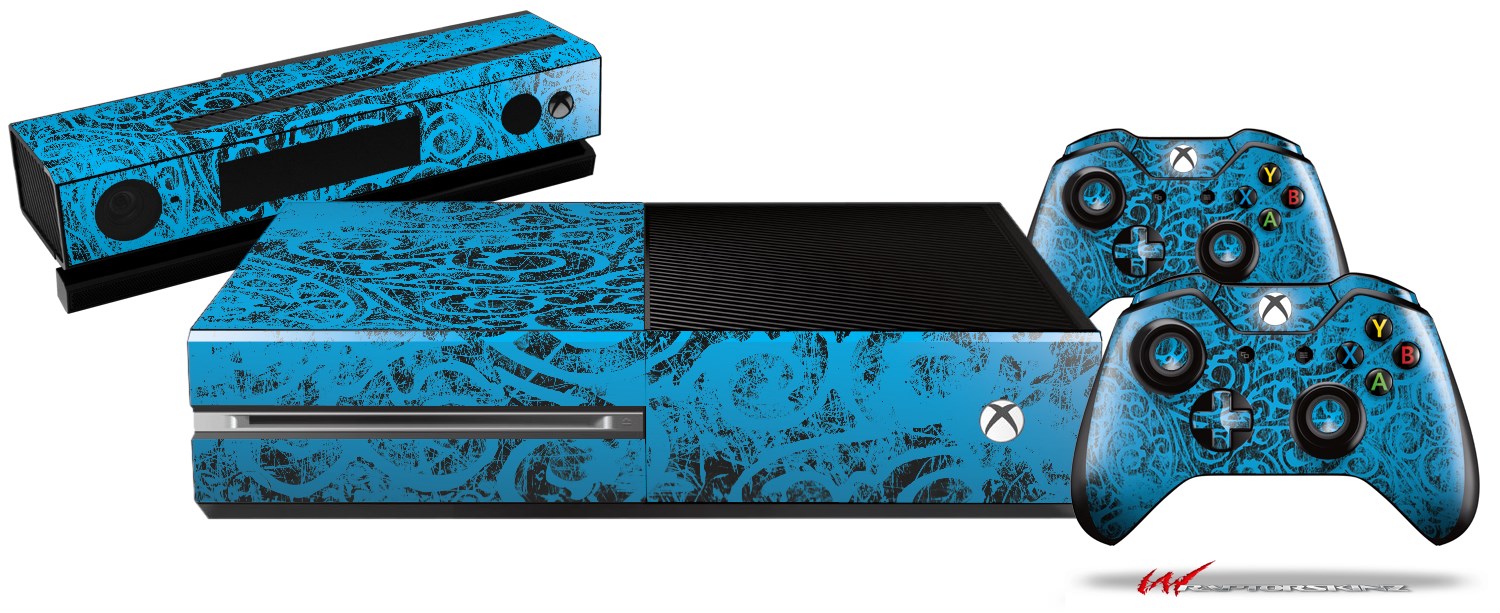 Folder Doodles Blue Medium - Holiday Bundle Decal Style Skin fits XBOX One Console Original, Kinect and 2 Controllers (XBOX SYSTEM NOT INCLUDED)