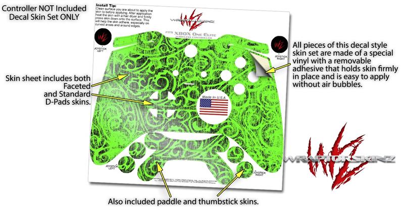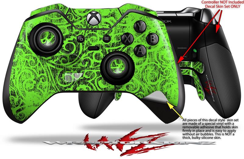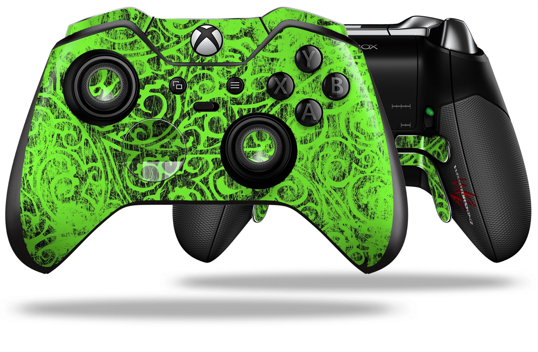Folder Doodles Neon Green - Decal Style Skin fits Microsoft XBOX One ELITE Wireless Controller