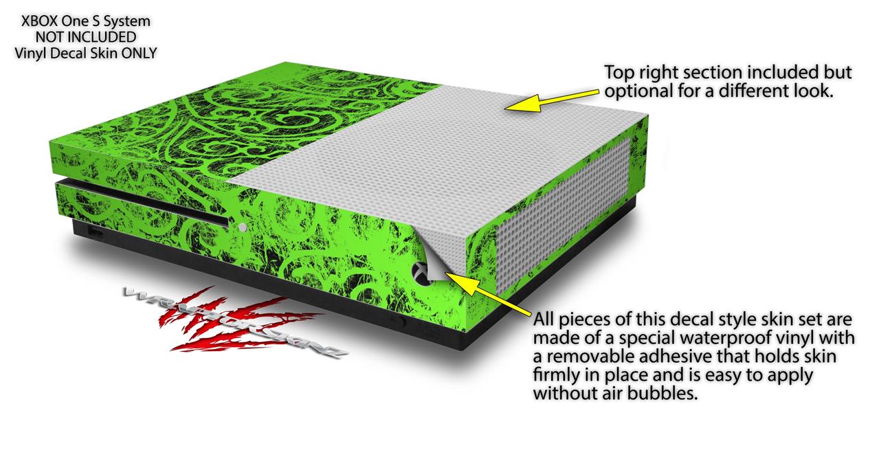 WraptorSkinz Decal Skin Wrap Set works with 2016 and newer XBOX One S Console and 2 Controllers Folder Doodles Neon Green