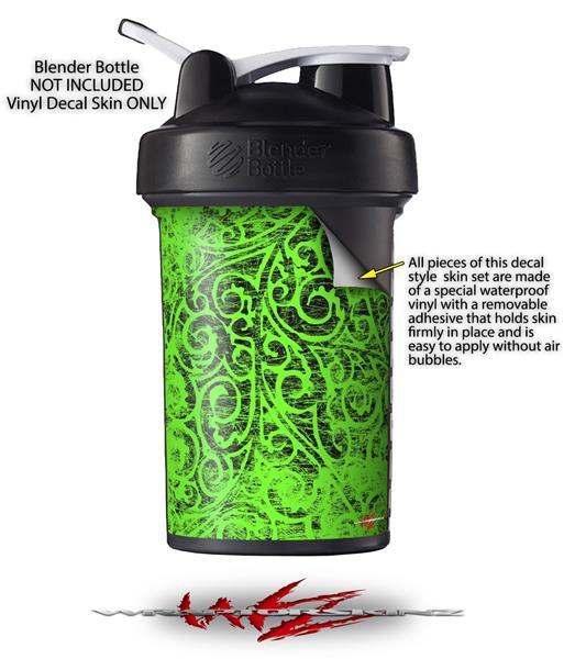 Decal Style Skin Wrap works with Blender Bottle 22oz ProStak Folder Doodles Neon Green (BOTTLE NOT INCLUDED)