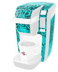 Decal Style Vinyl Skin compatible with Keurig K10 / K15 Mini Plus Coffee Makers Folder Doodles Neon Teal (KEURIG NOT INCLUDED)