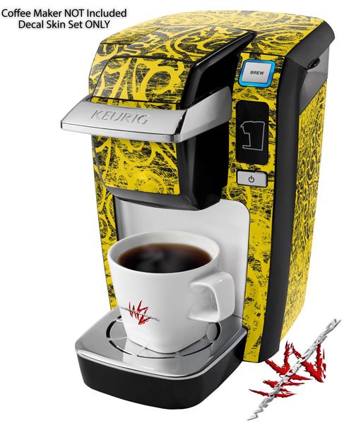 Decal Style Vinyl Skin compatible with Keurig K10 / K15 Mini Plus Coffee Makers Folder Doodles Yellow (KEURIG NOT INCLUDED)