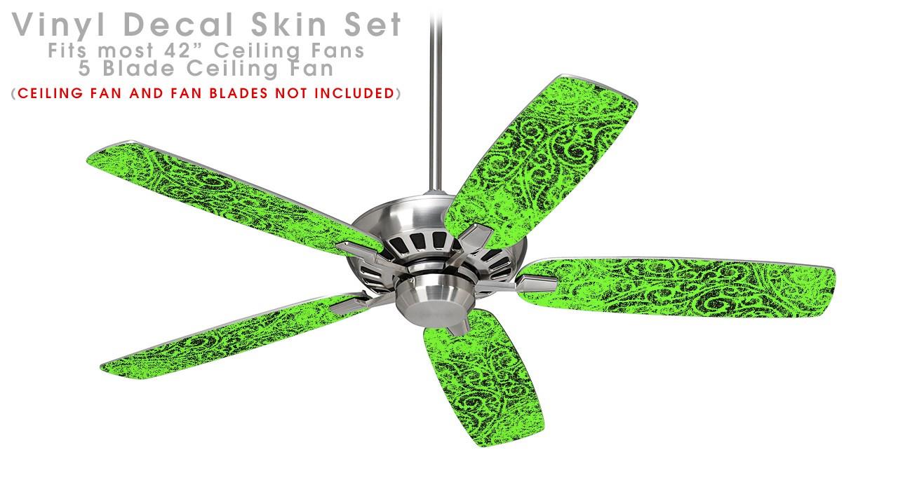 Folder Doodles Neon Green - Ceiling Fan Skin Kit fits most 42 inch fans (FAN and BLADES SOLD SEPARATELY)