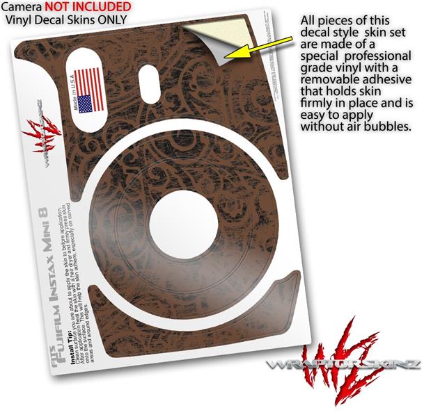 WraptorSkinz Skin Decal Wrap compatible with Fujifilm Mini 8 Camera Folder Doodles Chocolate Brown (CAMERA NOT INCLUDED)
