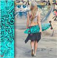 Folder Doodles Neon Teal - Decal Style Vinyl Wrap Skin fits Longboard Skateboards up to 10"x42" (LONGBOARD NOT INCLUDED)
