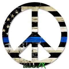 Painted Faded and Cracked Blue Line USA American Flag - Peace Sign Car Window Decal 6 x 6 inches