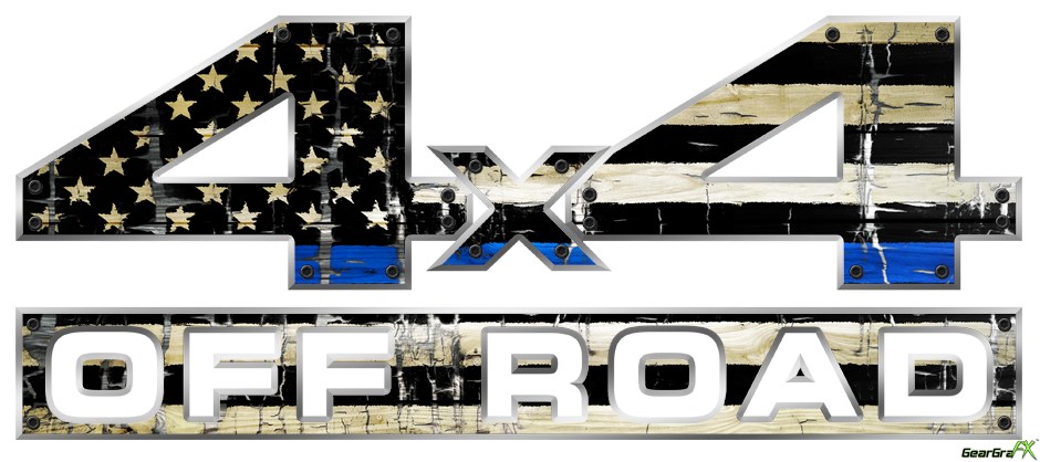 Painted Faded and Cracked Blue Line USA American Flag - 4x4 Decal Bolted 13x5.5 (2 Decal Set)
