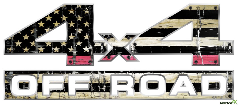 Painted Faded and Cracked Pink Line USA American Flag - 4x4 Decal Bolted 13x5.5 (2 Decal Set)