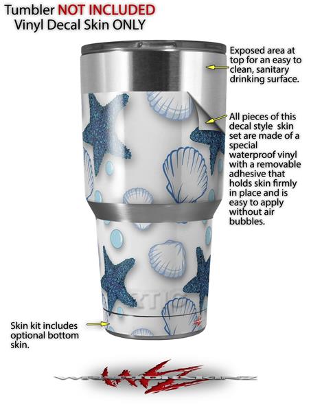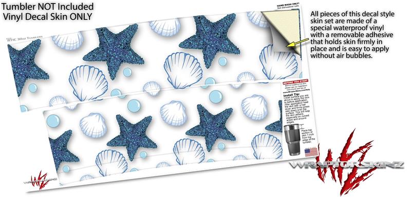 WraptorSkinz Skin Wrap compatible with RTIC 30oz ORIGINAL 2017 AND OLDER Tumblers Starfish and Sea Shells White (TUMBLER NOT INCLUDED)