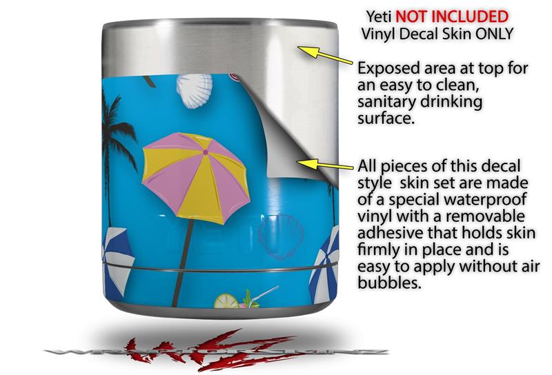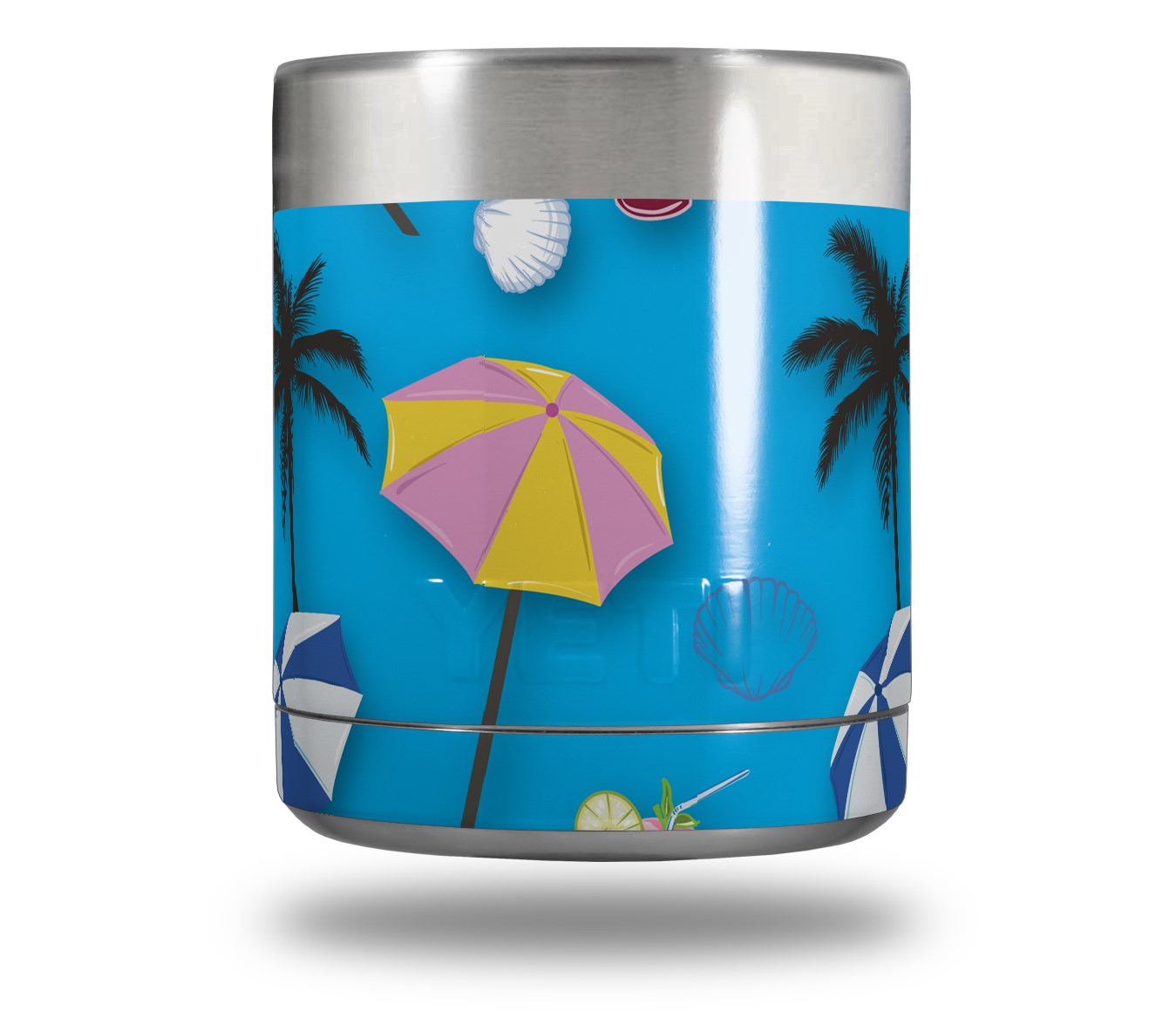 Skin Decal Wrap for Yeti Rambler Lowball - Beach Party Umbrellas Blue Medium