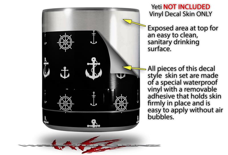 Skin Decal Wrap for Yeti Rambler Lowball - Nautical Anchors Away 02 Black