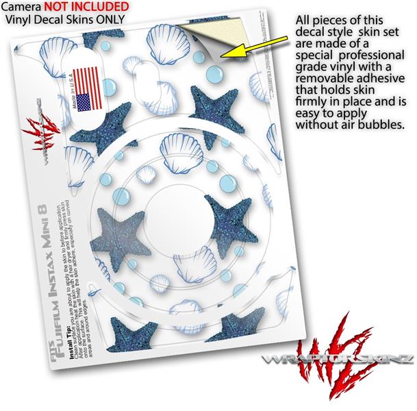 WraptorSkinz Skin Decal Wrap compatible with Fujifilm Mini 8 Camera Starfish and Sea Shells White (CAMERA NOT INCLUDED)