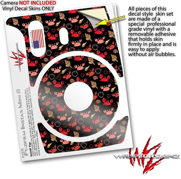 WraptorSkinz Skin Decal Wrap compatible with Fujifilm Mini 8 Camera Crabs and Shells Black (CAMERA NOT INCLUDED)
