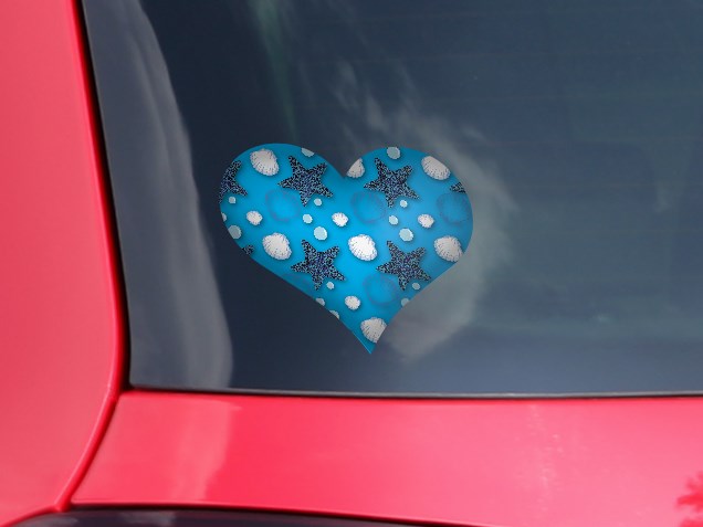 Starfish and Sea Shells Blue Medium - I Heart Love Car Window Decal 6.5 x 5.5 inches