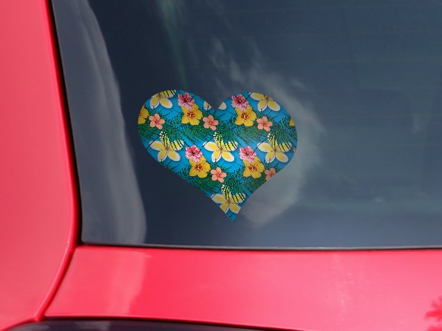 Beach Flowers 02 Blue Medium - I Heart Love Car Window Decal 6.5 x 5.5 inches