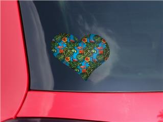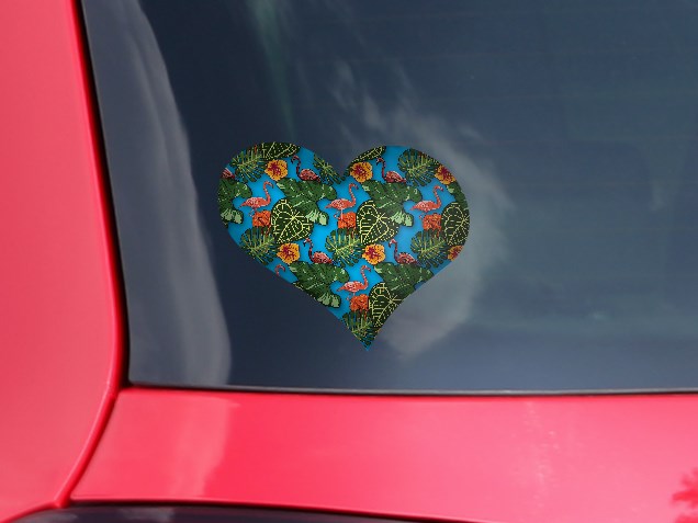 Famingos and Flowers Blue Medium - I Heart Love Car Window Decal 6.5 x 5.5 inches