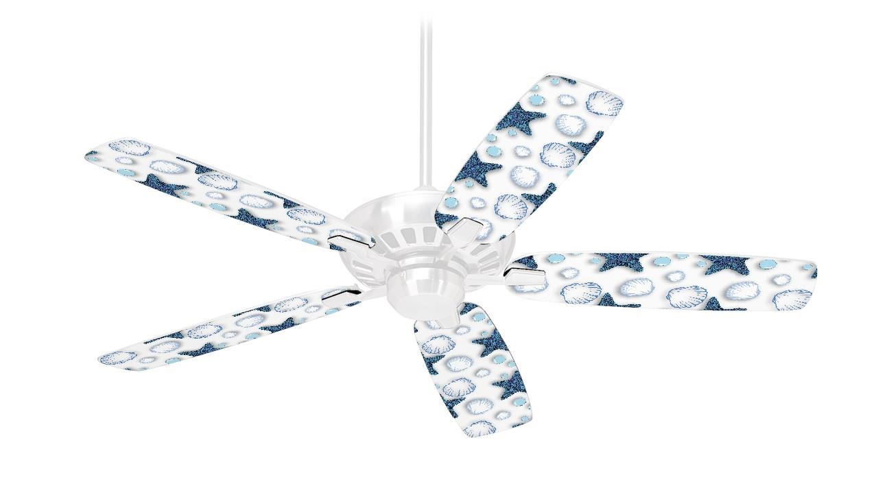 Starfish and Sea Shells White - Ceiling Fan Skin Kit fits most 42 inch fans (FAN and BLADES SOLD SEPARATELY)