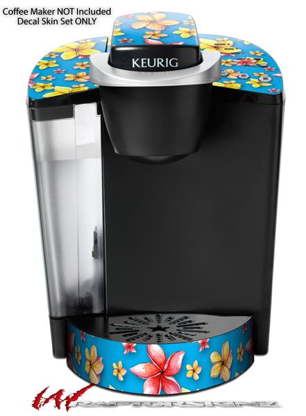 Decal Style Vinyl Skin compatible with Keurig K40 Elite Coffee Makers Beach Flowers Blue Medium (KEURIG NOT INCLUDED)