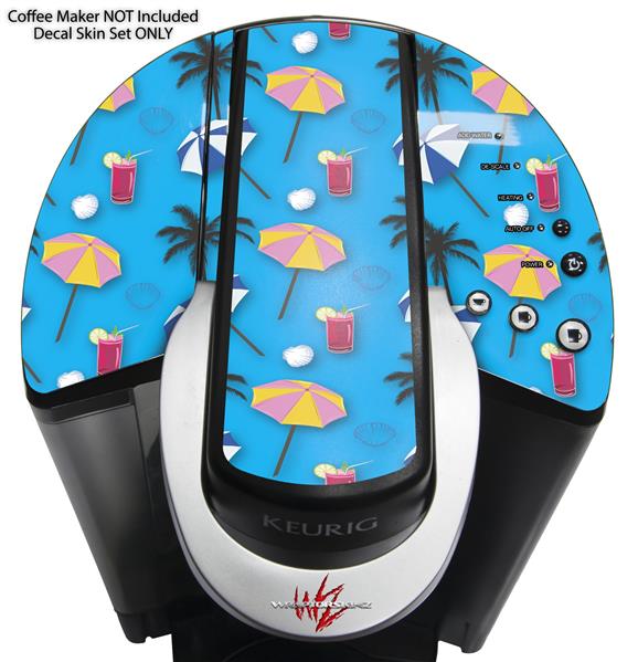 Decal Style Vinyl Skin compatible with Keurig K40 Elite Coffee Makers Beach Party Umbrellas Blue Medium (KEURIG NOT INCLUDED)
