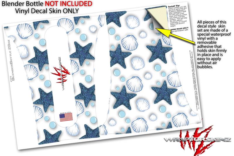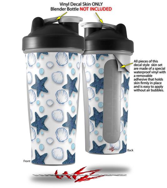 Decal Style Skin Wrap works with Blender Bottle 28oz Starfish and Sea Shells White (BOTTLE NOT INCLUDED)