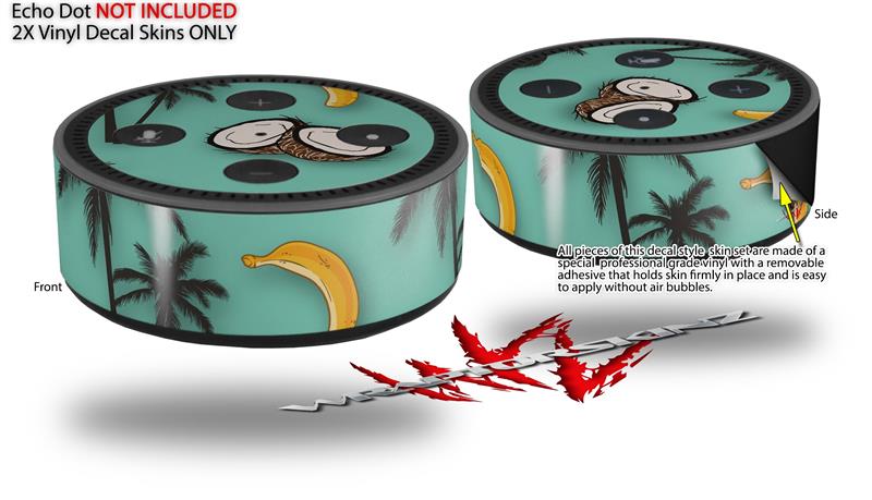 Skin Wrap Decal Set 2 Pack for Amazon Echo Dot 2 - Coconuts Palm Trees and Bananas Seafoam Green (2nd Generation ONLY - Echo NOT INCLUDED)