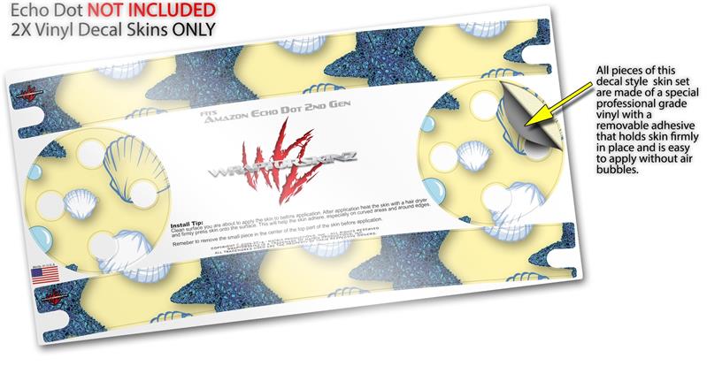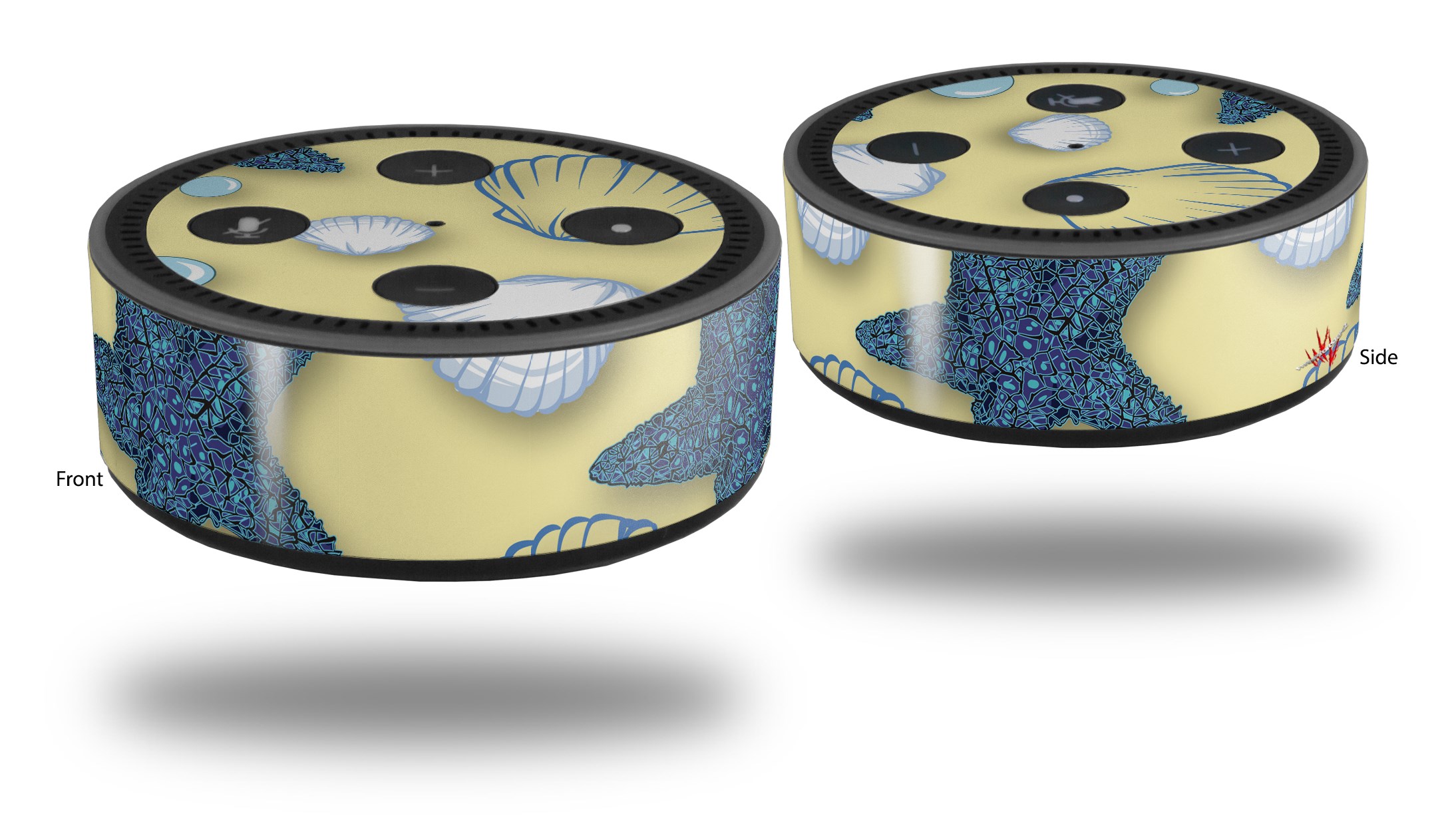 Skin Wrap Decal Set 2 Pack for Amazon Echo Dot 2 - Starfish and Sea Shells Yellow Sunshine (2nd Generation ONLY - Echo NOT INCLUDED)