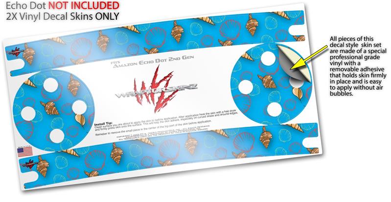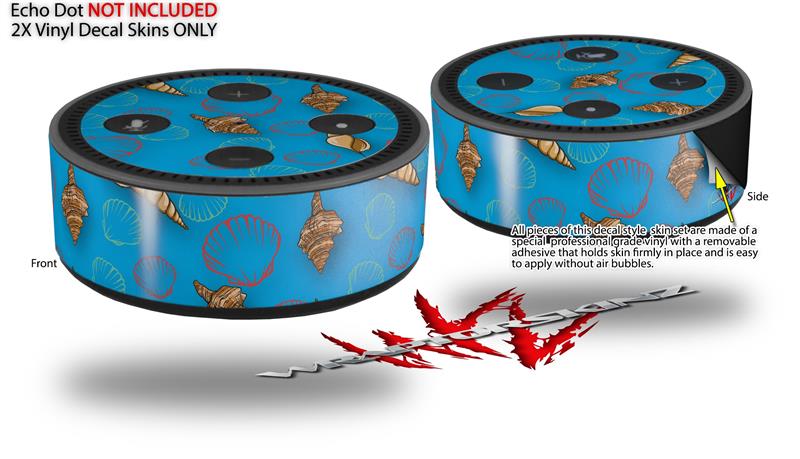 Skin Wrap Decal Set 2 Pack for Amazon Echo Dot 2 - Sea Shells 02 Blue Medium (2nd Generation ONLY - Echo NOT INCLUDED)