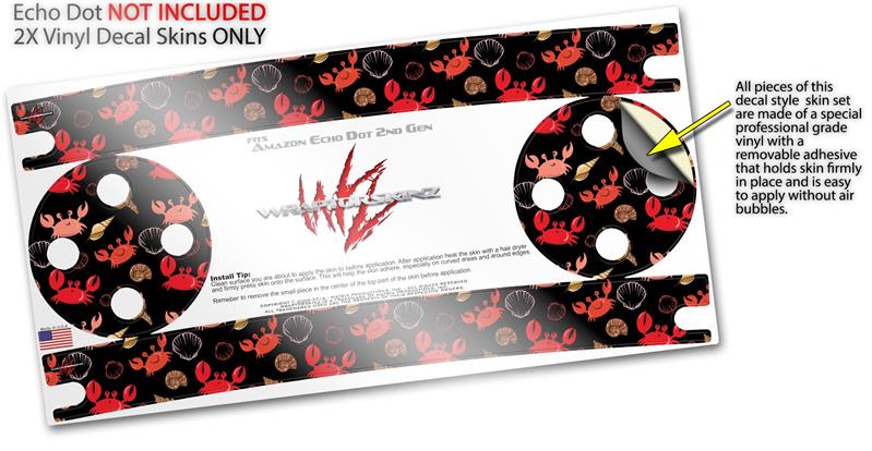 Skin Wrap Decal Set 2 Pack for Amazon Echo Dot 2 - Crabs and Shells Black (2nd Generation ONLY - Echo NOT INCLUDED)