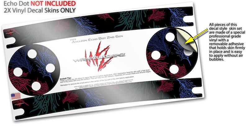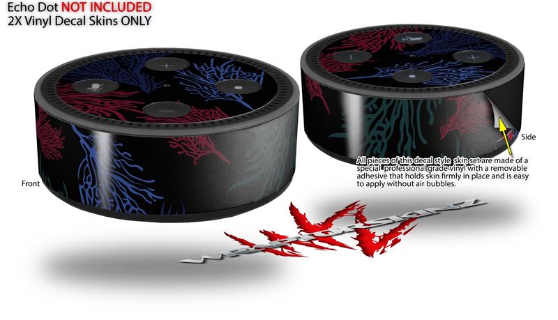 Skin Wrap Decal Set 2 Pack for Amazon Echo Dot 2 - Floating Coral Black (2nd Generation ONLY - Echo NOT INCLUDED)