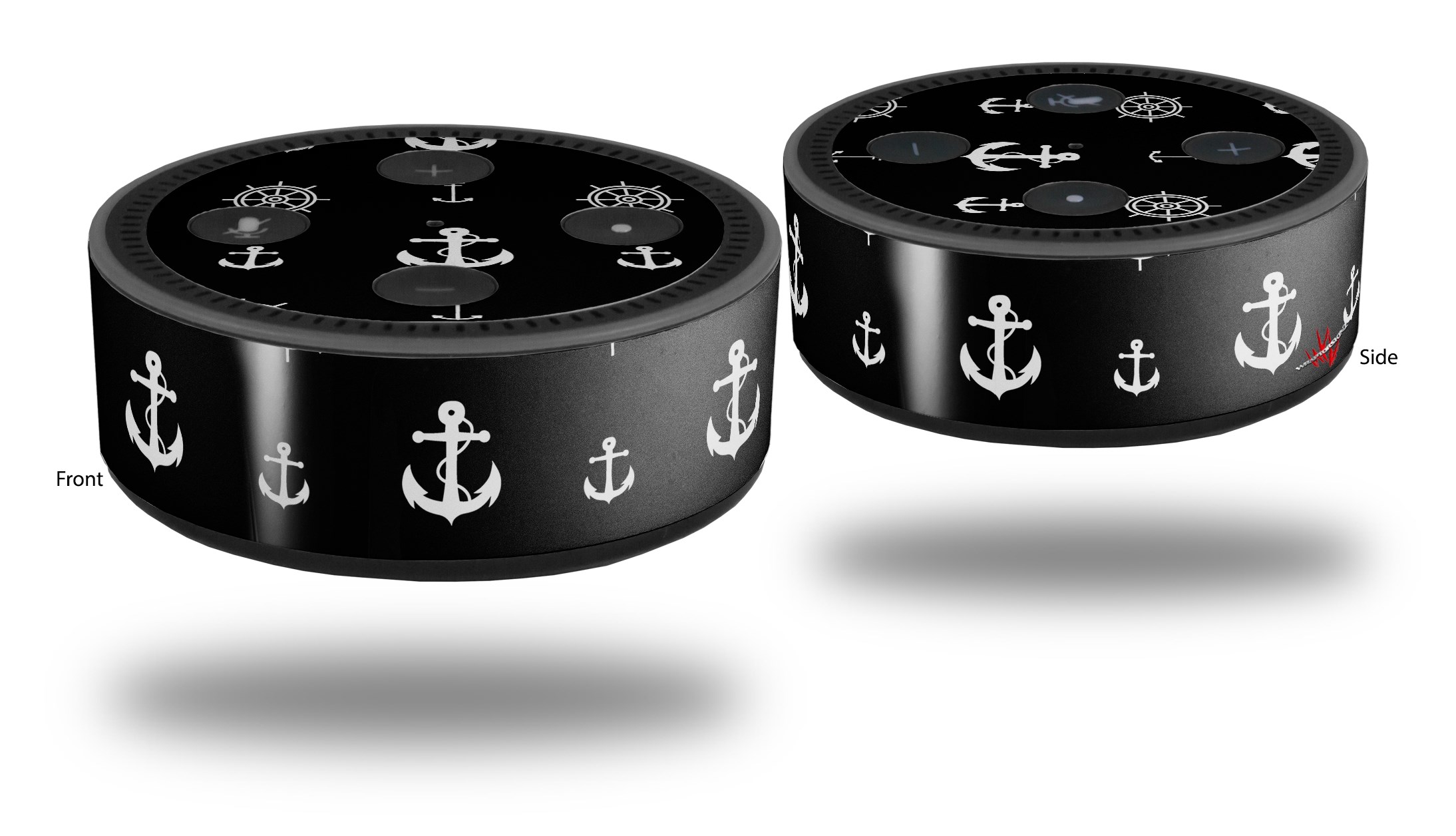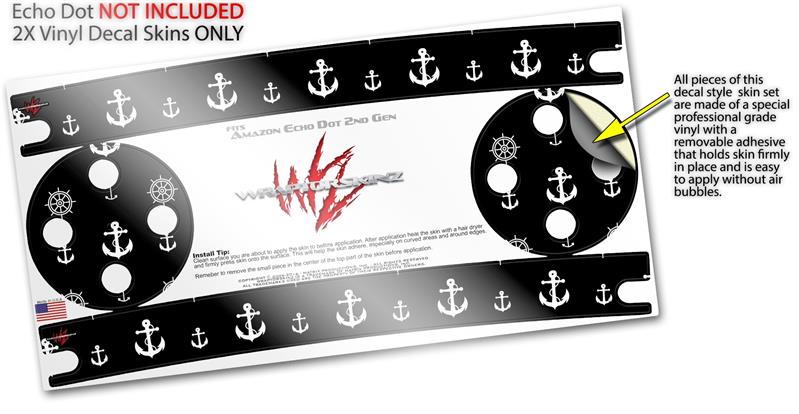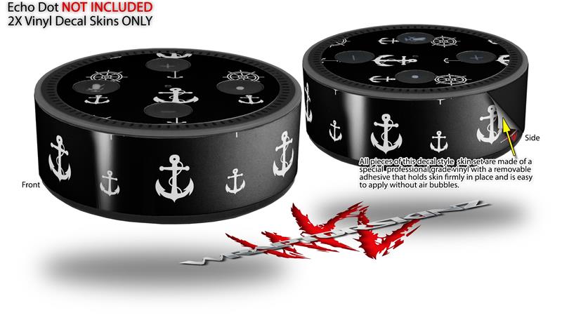 Skin Wrap Decal Set 2 Pack for Amazon Echo Dot 2 - Nautical Anchors Away 02 Black (2nd Generation ONLY - Echo NOT INCLUDED)