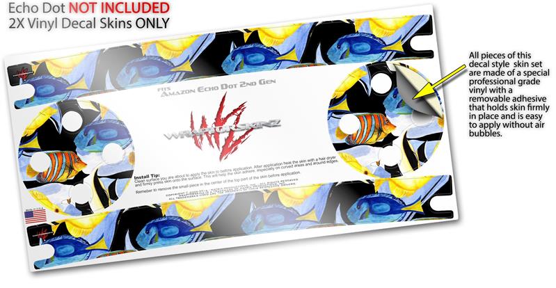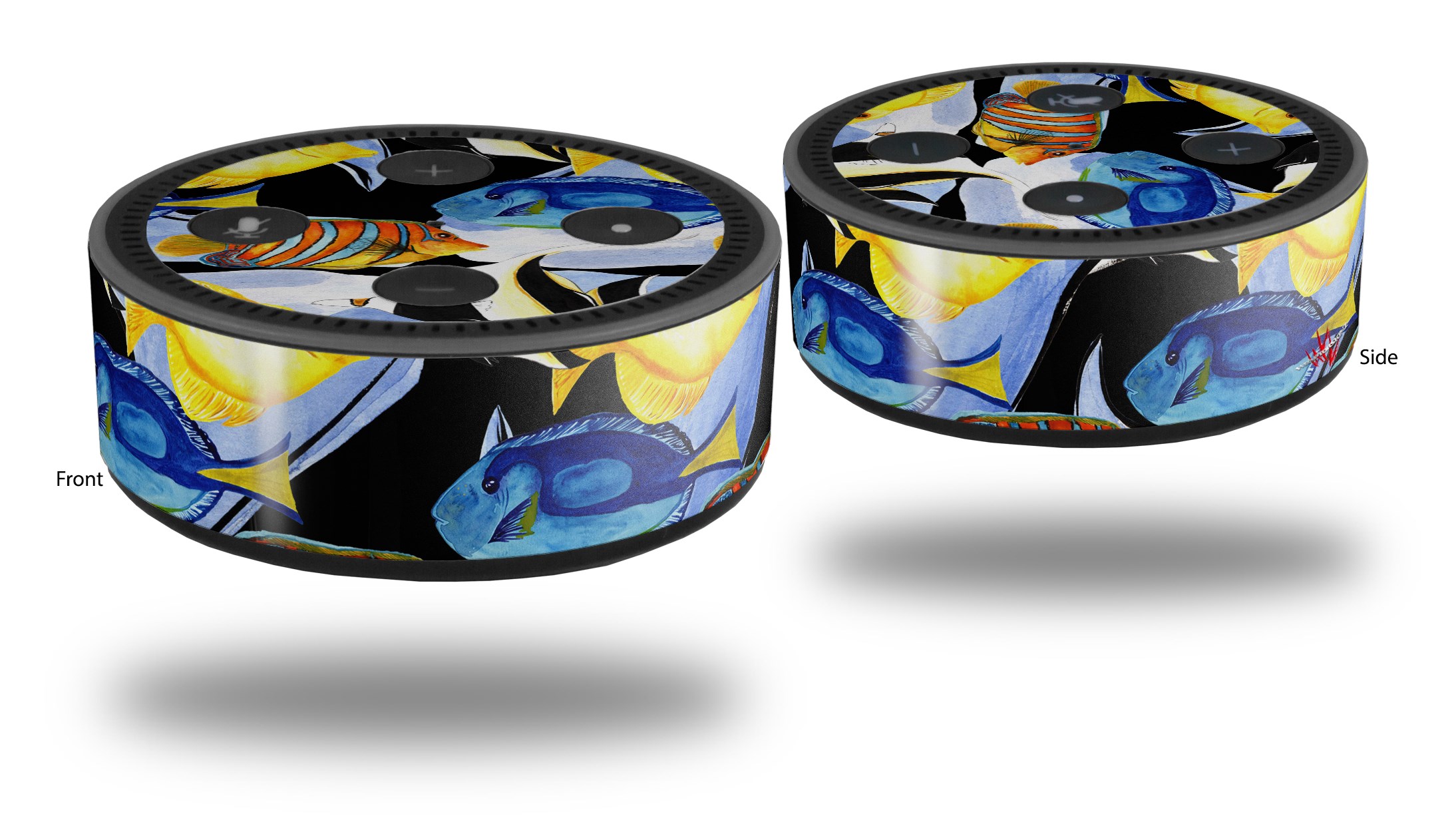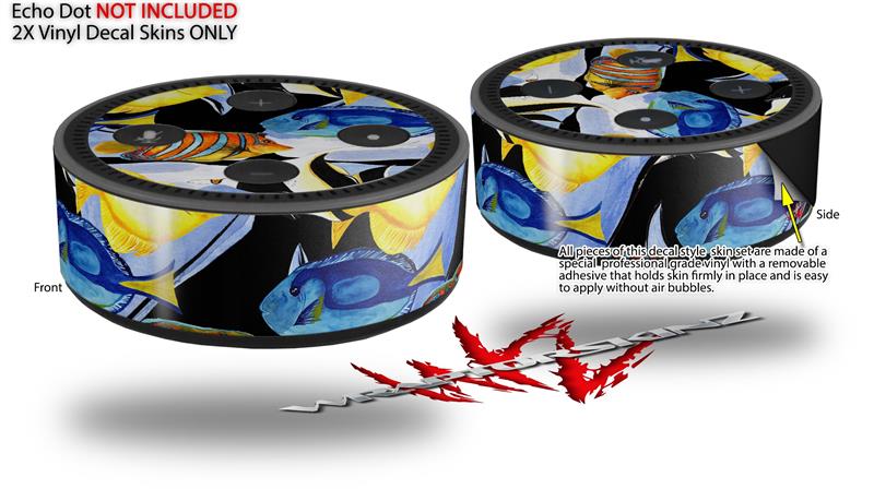 Skin Wrap Decal Set 2 Pack for Amazon Echo Dot 2 - Tropical Fish 01 Black (2nd Generation ONLY - Echo NOT INCLUDED)