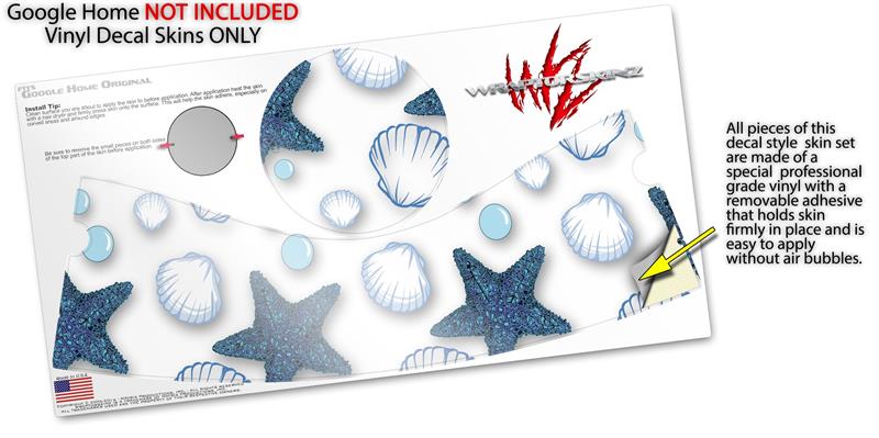 Decal Style Skin Wrap for Google Home Original - Starfish and Sea Shells White (GOOGLE HOME NOT INCLUDED)