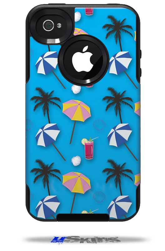 Beach Party Umbrellas Blue Medium - Decal Style Vinyl Skin fits Otterbox Commuter iPhone4/4s Case (CASE SOLD SEPARATELY)