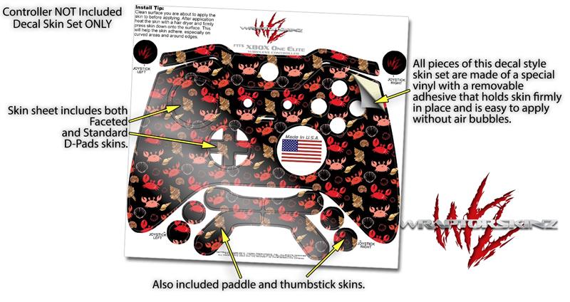 Crabs and Shells Black - Decal Style Skin fits Microsoft XBOX One ELITE Wireless Controller
