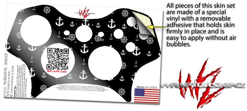 XBOX 360 Wireless Controller Decal Style Skin - Nautical Anchors Away 02 Black (CONTROLLER NOT INCLUDED)