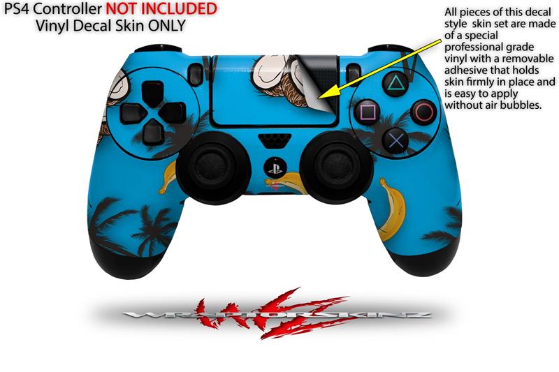 WraptorSkinz Skin compatible with Sony PS4 Dualshock Controller PlayStation 4 Original Slim and Pro Coconuts Palm Trees and Bananas Blue Medium (CONTROLLER NOT INCLUDED)