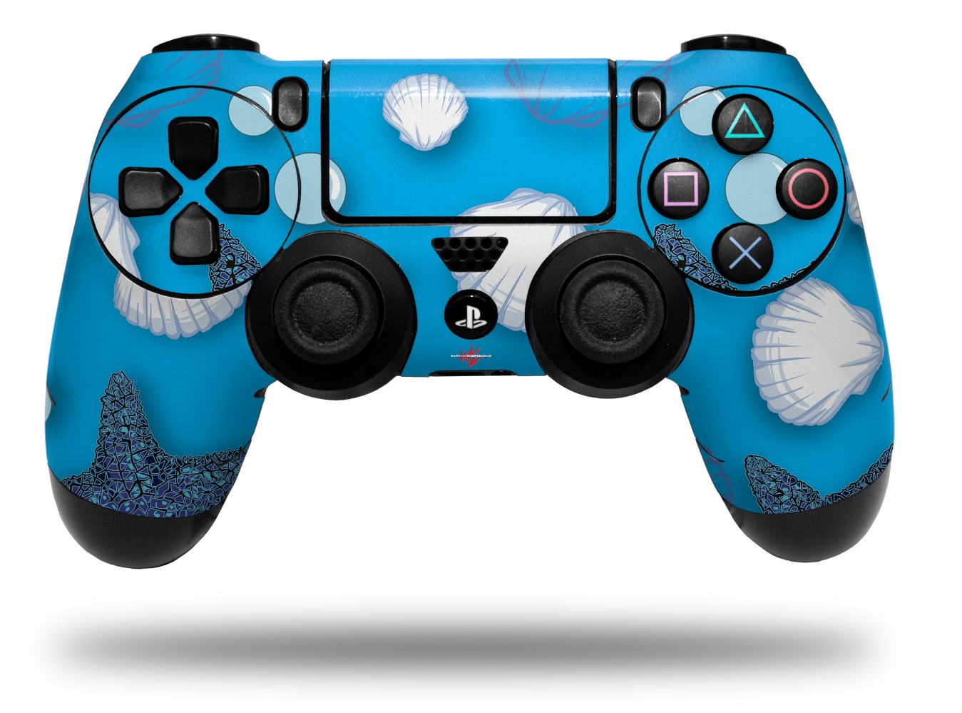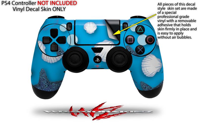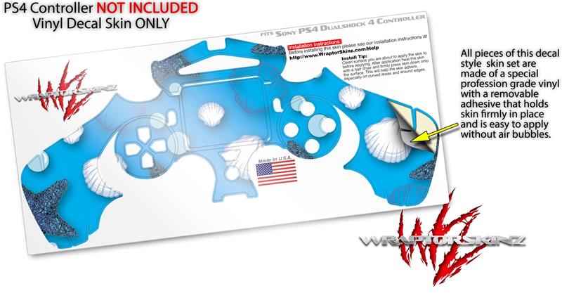 WraptorSkinz Skin compatible with Sony PS4 Dualshock Controller PlayStation 4 Original Slim and Pro Starfish and Sea Shells Blue Medium (CONTROLLER NOT INCLUDED)