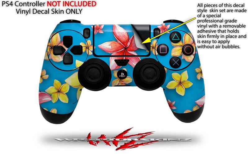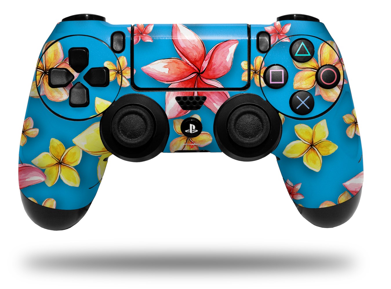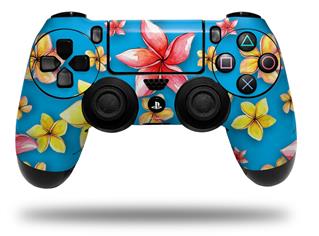 WraptorSkinz Skin compatible with Sony PS4 Dualshock Controller PlayStation 4 Original Slim and Pro Beach Flowers Blue Medium (CONTROLLER NOT INCLUDED)