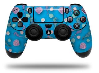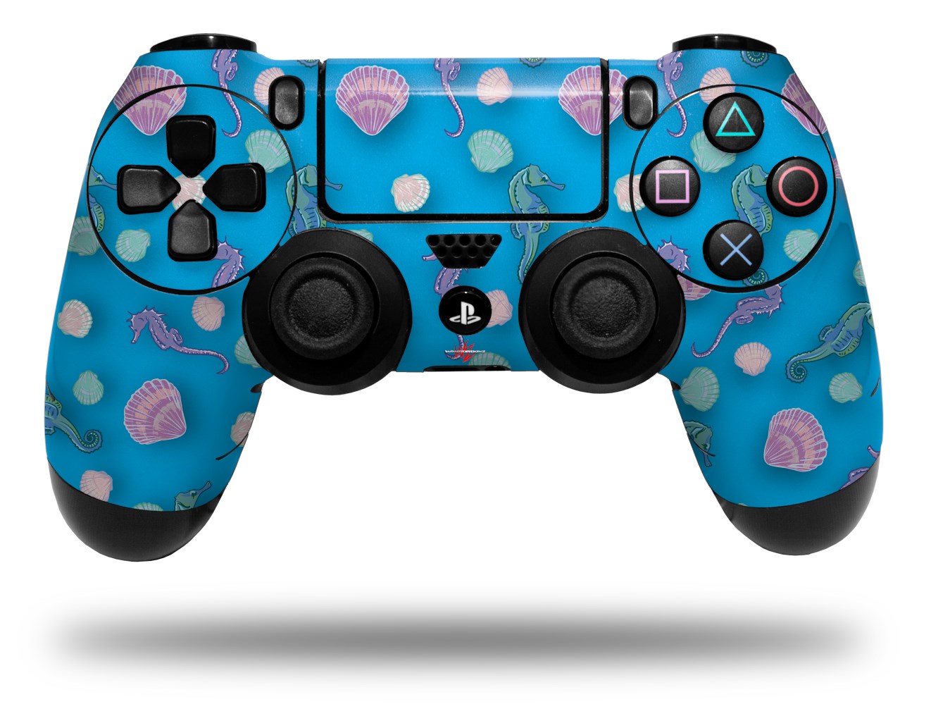 WraptorSkinz Skin compatible with Sony PS4 Dualshock Controller PlayStation 4 Original Slim and Pro Seahorses and Shells Blue Medium (CONTROLLER NOT INCLUDED)