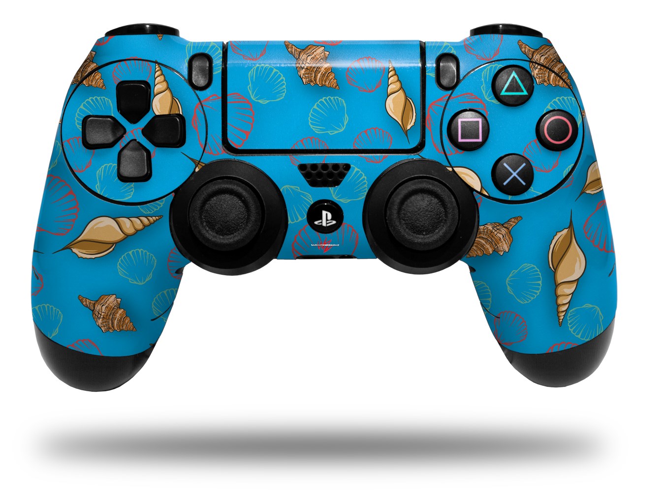 WraptorSkinz Skin compatible with Sony PS4 Dualshock Controller PlayStation 4 Original Slim and Pro Sea Shells 02 Blue Medium (CONTROLLER NOT INCLUDED)