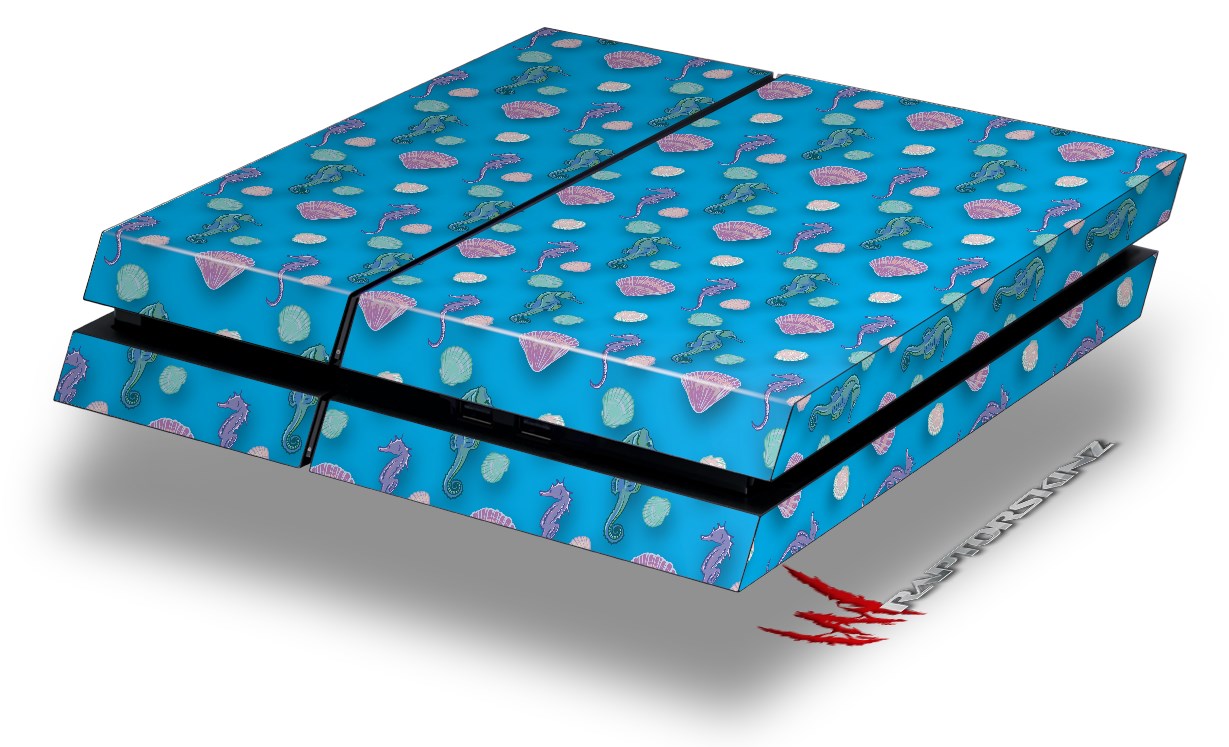 Vinyl Decal Skin Wrap compatible with Sony PlayStation 4 Original Console Seahorses and Shells Blue Medium (PS4 NOT INCLUDED)