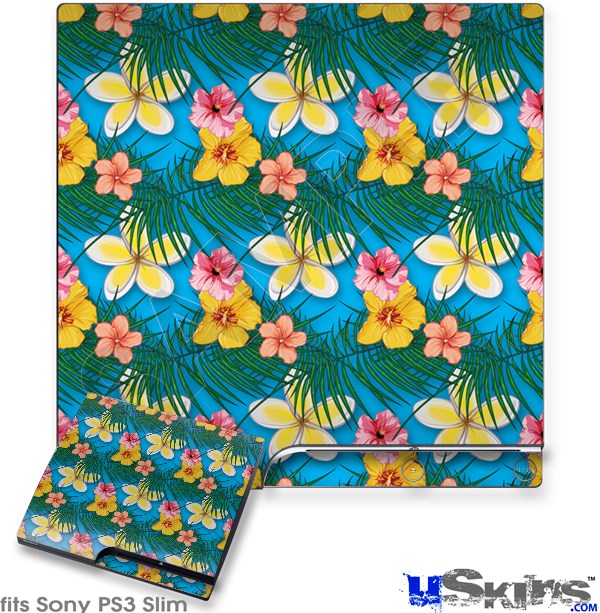 Decal Skin compatible with Sony PS3 Slim Beach Flowers 02 Blue Medium