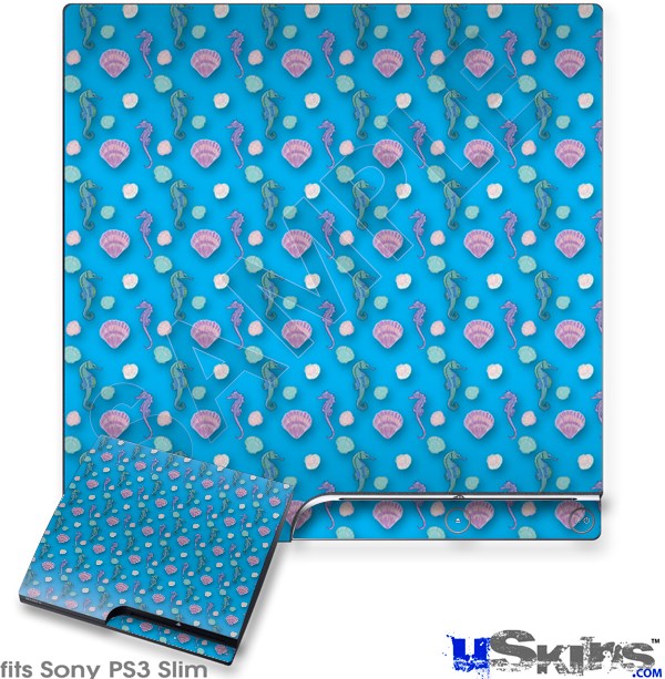Decal Skin compatible with Sony PS3 Slim Seahorses and Shells Blue Medium