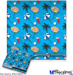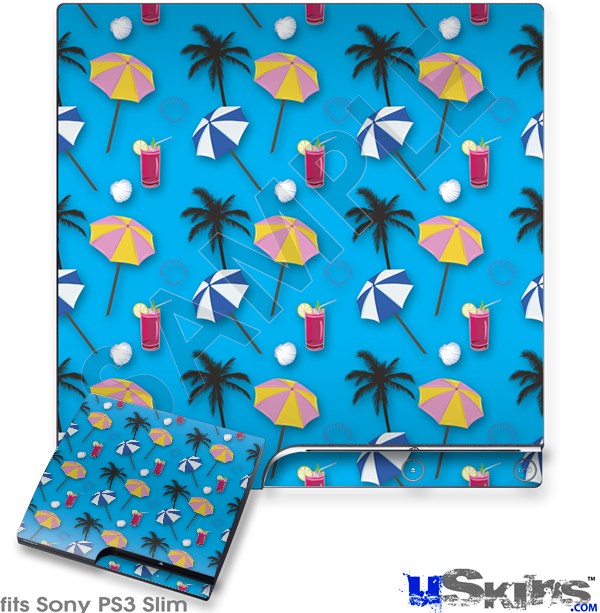 Decal Skin compatible with Sony PS3 Slim Beach Party Umbrellas Blue Medium