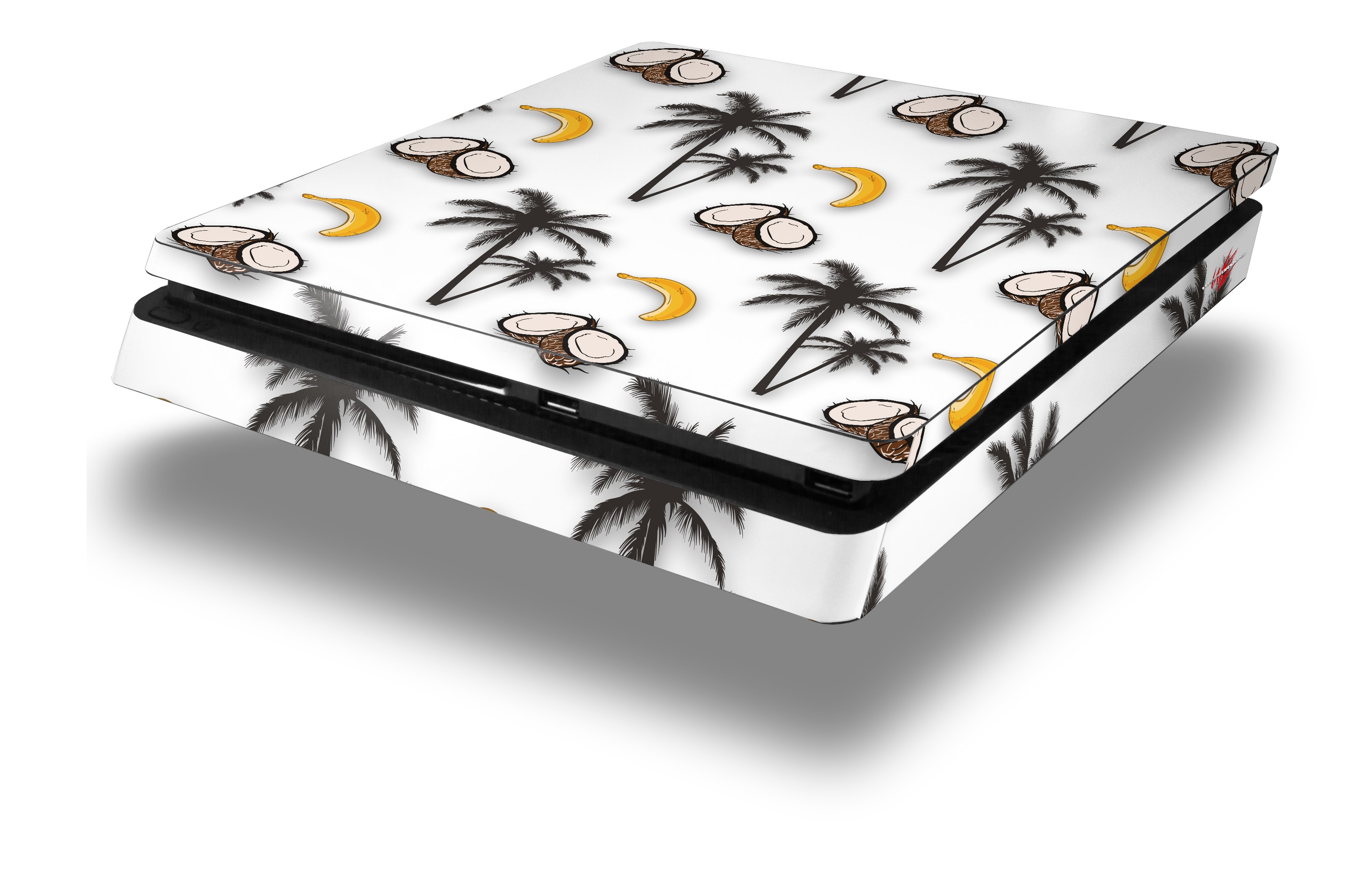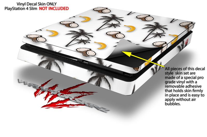 Vinyl Decal Skin Wrap compatible with Sony PlayStation 4 Slim Console Coconuts Palm Trees and Bananas White (PS4 NOT INCLUDED)