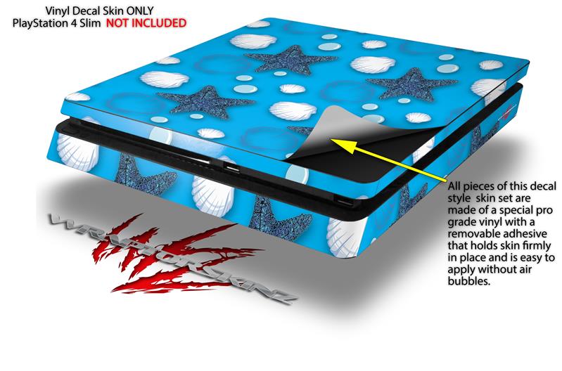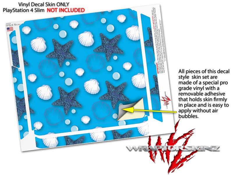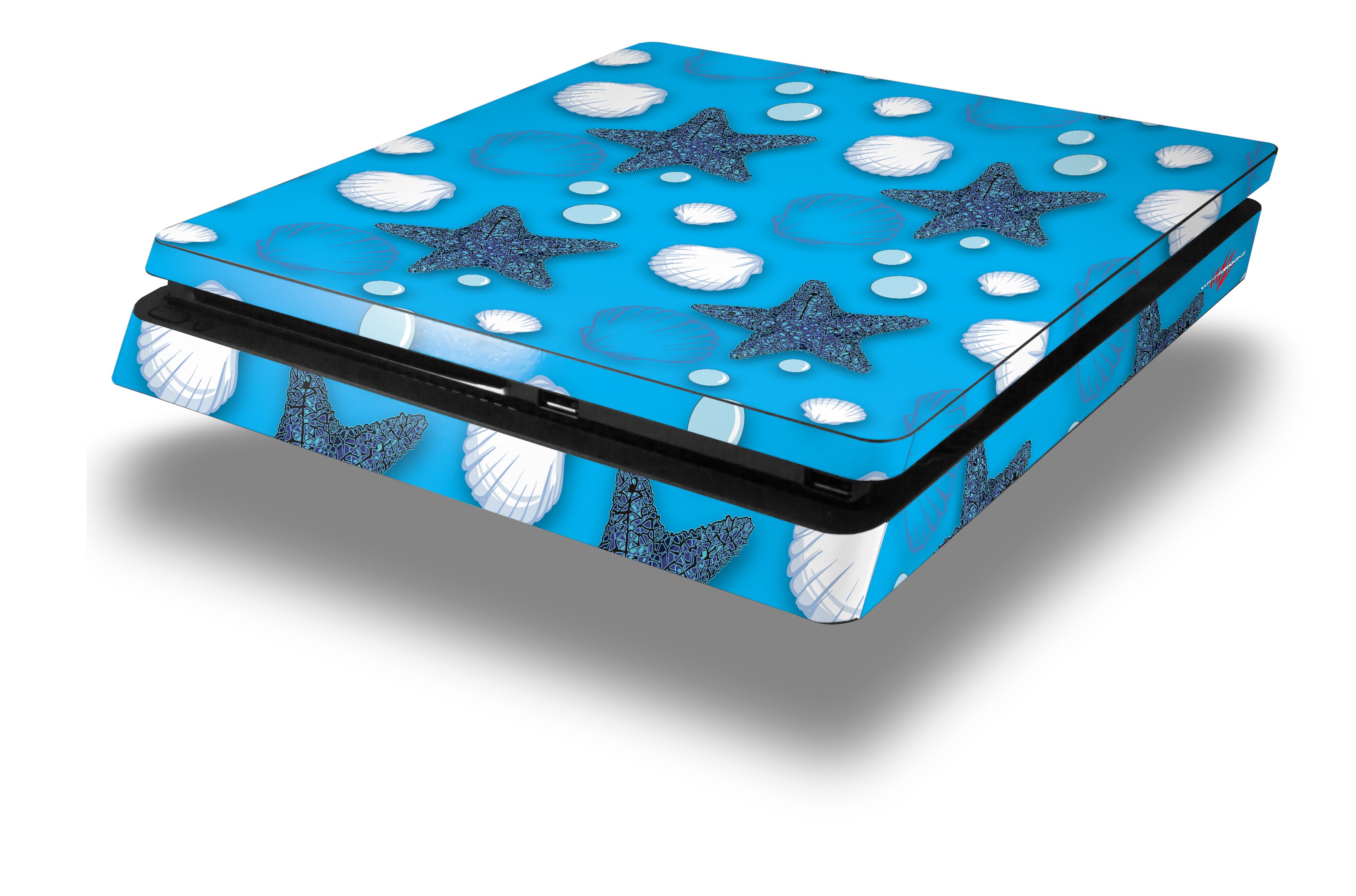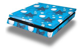 Vinyl Decal Skin Wrap compatible with Sony PlayStation 4 Slim Console Starfish and Sea Shells Blue Medium (PS4 NOT INCLUDED)
