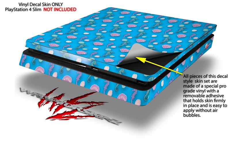 Vinyl Decal Skin Wrap compatible with Sony PlayStation 4 Slim Console Seahorses and Shells Blue Medium (PS4 NOT INCLUDED)