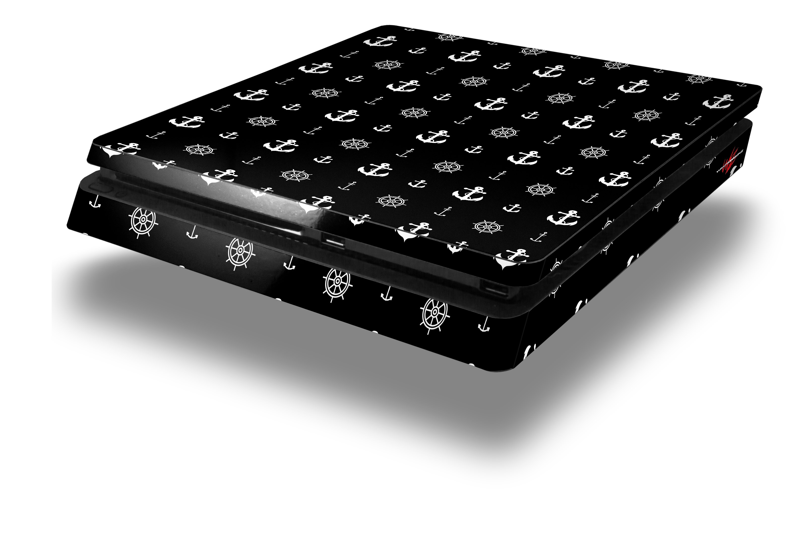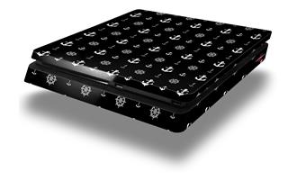 Vinyl Decal Skin Wrap compatible with Sony PlayStation 4 Slim Console Nautical Anchors Away 02 Black (PS4 NOT INCLUDED)