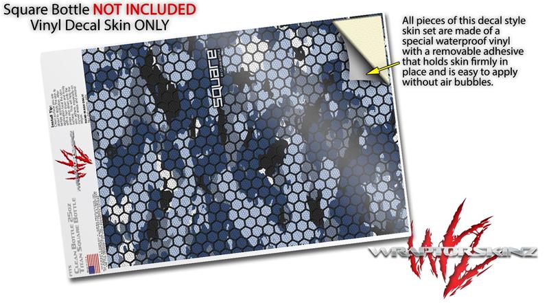 Skin Decal Wrap for Clean Bottle Square Titan Plastic 25oz HEX Mesh Camo 01 Blue (BOTTLE NOT INCLUDED)
