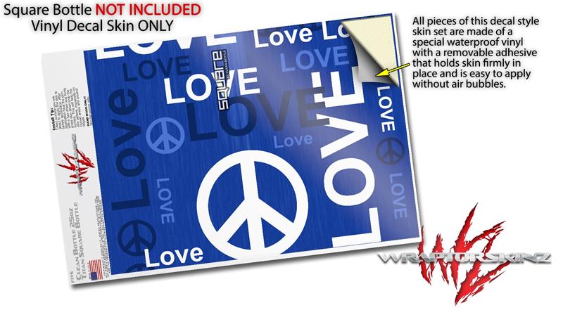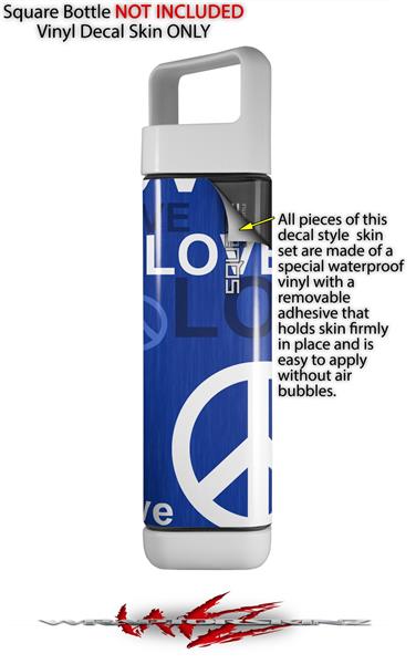 Skin Decal Wrap for Clean Bottle Square Titan Plastic 25oz Love and Peace Blue (BOTTLE NOT INCLUDED)